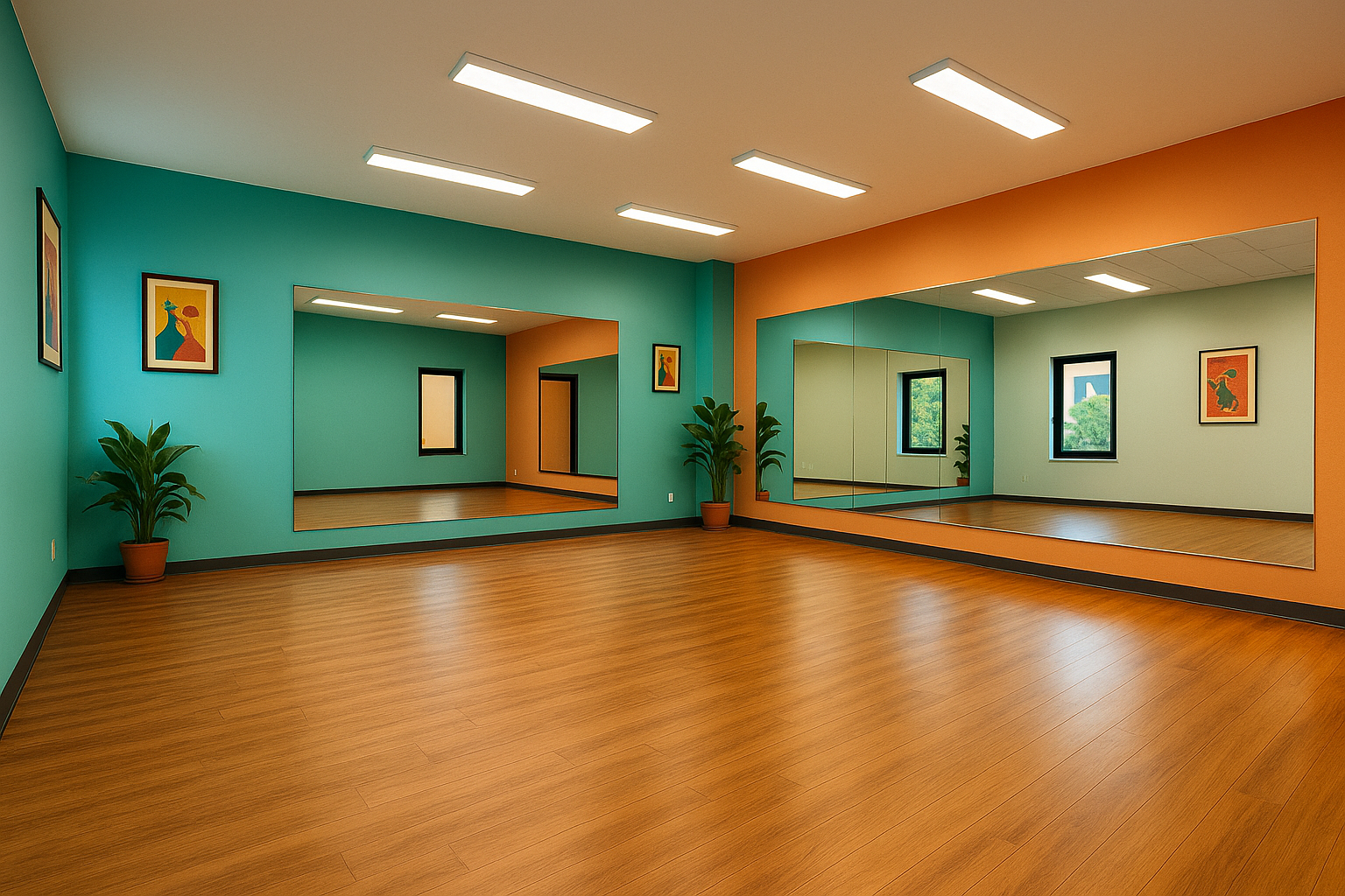 Nuestro estudio tiene suelos de madera, espejos y ambiente cálido para que te sientas como en casa desde el primer día.